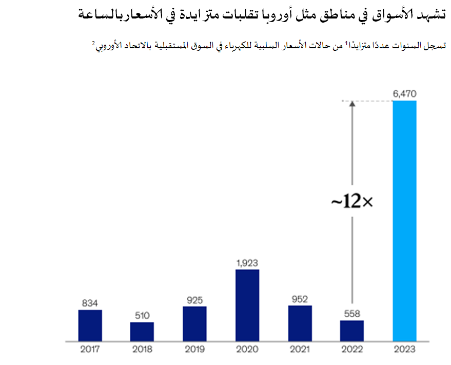 (1) تعني حالة واحدة ساعة واحدة تكون فيها الأسعار سلبية. (2) تشمل البيانات الاتحاد الأوروبي، بالإضافة إلى النرويج وسويسرا. المصدر: وكالة الاتحاد الأوروبي للتعاون في تنظيم الطاقة (ACER).