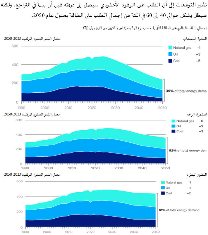 توقعات بانخفاض الطلب على الوقود الأحفوري، لكنه سيبقى عنصراً أساسياً في مزيج الطاقة العالمي ضمن السيناريوهات المحتملة كافة
