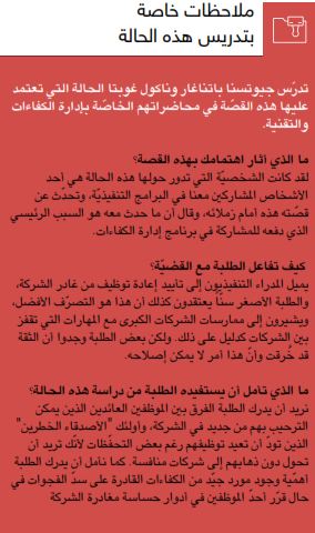 ومنذ أن اتّخذت ذلك القرار قبل ثلاث سنوات، حدثت بعض الاستقالات في فريق العمل في الشركة على المستوى الأدنى والمتوسط من الموظفين، ولكنّ الوضع بشكل عامّ كان مستقرّاً وكانت العلاقات بين الموظفين وثيقة. وقد أدّى التعاون الحاصل بين الموظفين في الشركة إلى زيادة حجم أعمالها بنسبة 300%. ولذا فإنّني لست نادماً على رفضي إعادة تعيين ذلك الموظف، وأعتقد أن على رام ألاّ يشعر بذلك هو الآخر. فالأفضل أن يتمنّى لهاري التوفيق وأن ينصرفَ لتطوير شركته مع بقيّة الزملاء الذين يثق بهم ويعتمد عليهم الآن.