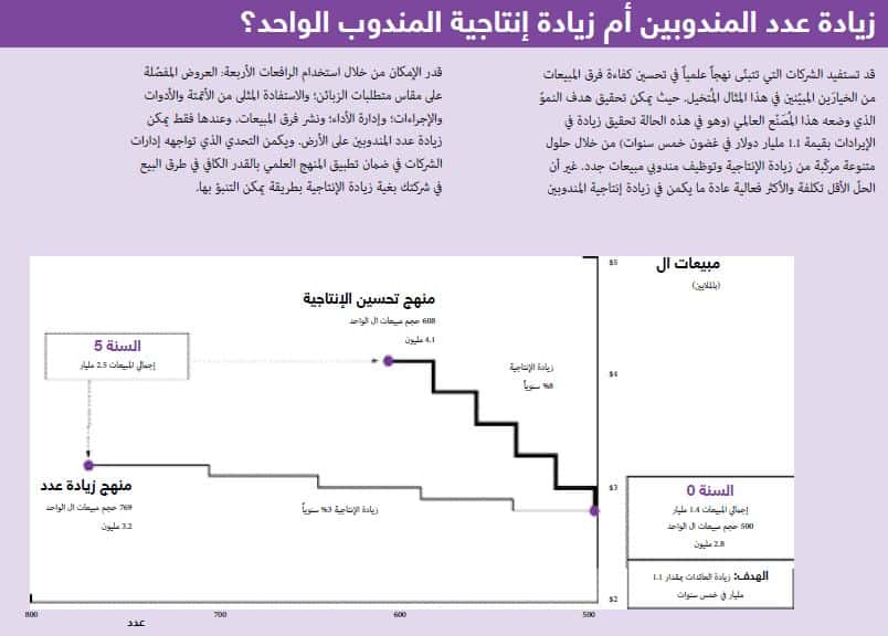 وجدت الشركات التي تستخدم المنهج العلمي في تحسين إنتاجية فرق المبيعات أن مندوبي المبيعات ذوي الأداء المنخفض يحققون قفزات ملحوظة في الإنتاجية قد تصل إلى 200%.