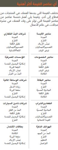أما ما سوى الجودة من عناصر، فأهميتها تختلف من قطاع إلى آخر. ففي مجال الأطعمة والمشروبات نجد، بطبيعة الحال، أن عنصر "الجاذبية الحسية" يأتي تقريباً في الدرجة الثانية. أما في قطاع الخدمات المصرفية فعنصر "تأمين الوصول للخدمات" و "المنفعة للورثة" (الاستثمار الجيد للأجيال القادمة) هما العنصران الأكثر أهمية. (انظر الملحق "أي عناصر القيمة أكثر أهمية؟"). إن عنصر "المنفعة للورثة" في واقع الأمر بالغ الأهمية في مجال الخدمات المالية عموماً، وذلك نظراً للرابط بين المال وتوريثه. أما في قطاع الهواتف الذكية، فنجد أن جاذبيتها الكبيرة تعود إلى العناصر المتعددة من القيم التي توفرها هذه الأجهزة للعميل فهي تحد من الجهد، وتوفر الوقت، وتربط بين الناس، وتحقق التكامل، وتقدم التنوع كما توفر المتعة والتسلية، وتوفر إمكانية الوصول، بالإضافة إلى القدرة على التنظيم. ولذلك نجد أن الشركات المصنعة لهذه الأجهزة، مثل أبل وسامسونج وإل جي حصلت على أعلى التقييمات من بين كافة الشركات التي درسناها.
