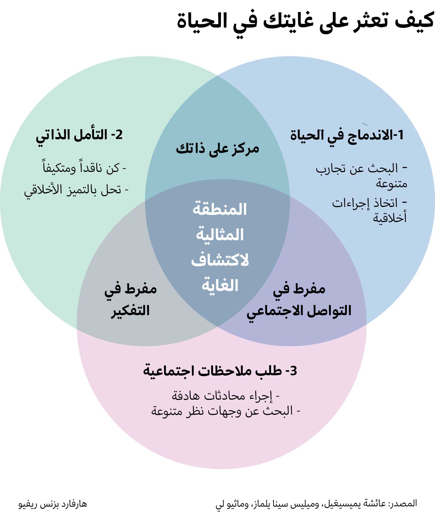 من خلال اتخاذ هذه الإجراءات، وبناءً على ما تحتاج إليه أكثر، يمكنك أن تقع في "المنطقة المثالية لاكتشاف الغاية"، وسيساعدك ذلك على توضيح غايتك والمضي قدماً في تحقيقها.