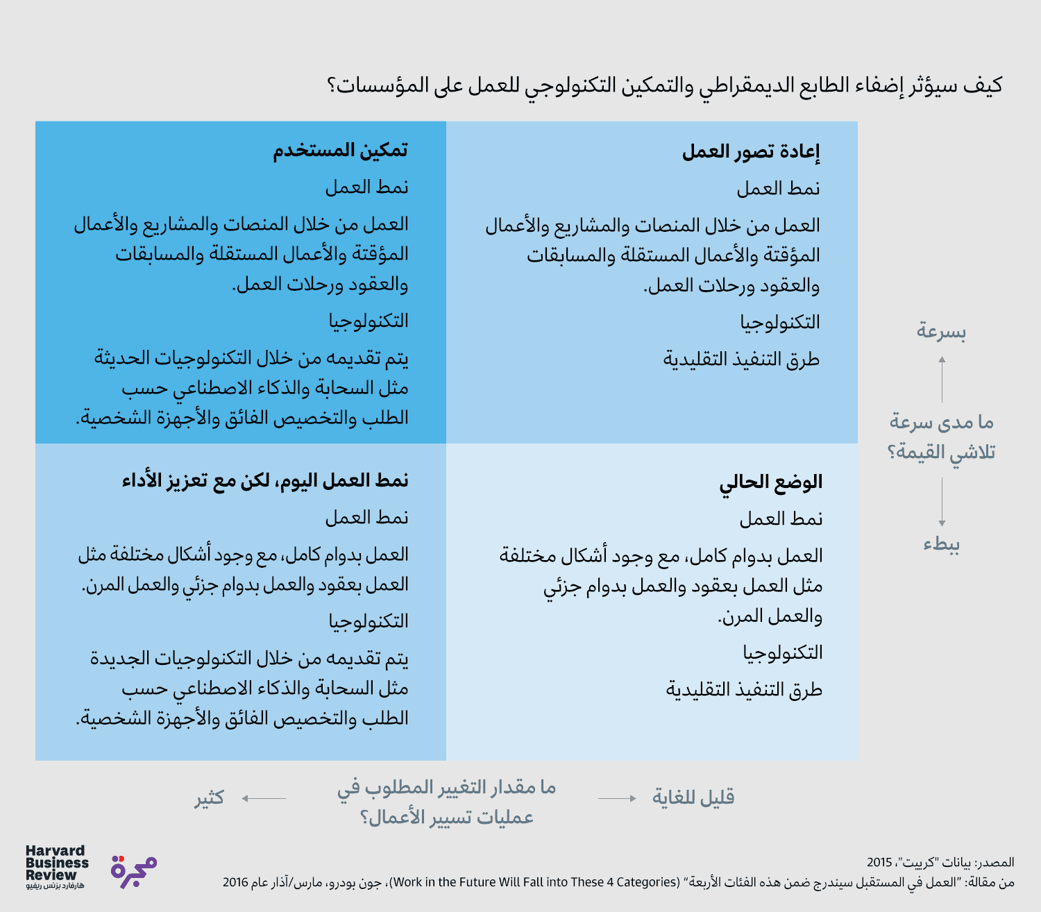 كيف سيؤثر إضفاء الطابع الديمقراطي والتمكين التكنولوجي للعمل على المؤسسات.