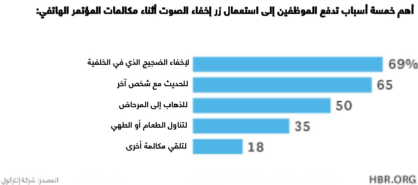 صحيح أن هذا الأمر قد لا يكون مفاجئاً جداً، بما أن معظم زملائنا يحملون أجهزة آيفون أو غيرها من الأجهزة المشابهة، بيد أن الأشياء التي يفعلها الناس أثناء مشاركتهم في الاجتماعات الهاتفية تعتبر مثيرة للاهتمام حقاً. فقد أجرت شركة "إنتر كول" مسحاً طال 530 أميركياً لتحديد بعض هذه النشاطات التي يقوم بها الناس، حيث قال 64% من هؤلاء بأنهم يفضلون استعمال هاتف محمول على استعمال هاتف عادي.