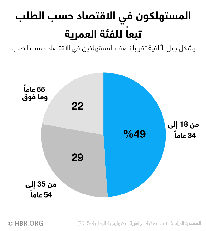 ولتوضيح ذلك، تبلغ نسبة المستهلكين الأكثر ابتكاراً "المستكشفون" في الاقتصاد حسب الطلب 41% وهو ما يقرب من الضعف مقارنةً بمعدل المستهلكين في المجتمع ككل، الذي يبلغ 24%. وفي غضون ذلك، يلبي الاقتصاد حسب الطلب احتياجات القطاعات التي تنطوي على المضايقات والنقص في الخدمات التكنولوجية، ما يعني ضمناً أن المنصات تلعب دوراً مهماً في تيسير الوصول إلى خدماتها وفي تجنب السلبيات التي تعمل تقليدياً على إبطاء نمو المنتجات والخدمات المبتكرة الأخرى. على سبيل المثال، يستحوذ سوق حسب الطلب على أكثر من حصته العادلة من المستهلكين "الرواد"، حيث تبلغ نسبة هؤلاء المستهلكين في هذه السوق 29% مقارنةً بـ 23% نسبتهم في المجموع العام للسكان، رغم أن على هذا القطاع تقديم درجة من الضمان وسهولة الاستخدام قبل أن يتبنى هؤلاء المستهلكون خدماته المبتكرة. وعلى نحو مماثل، يشمل سوق حسب الطلب على نفس معدلات "المترددين" الموجودة في عامة السكان، وهو ما لا يمكن تحقيقه إلا إذا كانت المنصات متاحة أمام الجميع. إضافة إلى ذلك، هناك شريحة من المستهلكين، وهم "المتشككون" في التكنولوجيا، الذين قد يتبنون هذا الاتجاه في المستقبل، ولكن ليس قبل أن تصبح الفوائد المترتبة على هذه التطبيقات ملموسة. حيث تعتبر تلك الشريحة منقوصة التمثيل في الاقتصاد حسب الطلب، ولكن تُبَيّن التجارب مع التكنولوجيات المبتكرة الأخرى أن هؤلاء المستهلكين سيلحقون بركب الاقتصاد حسب الطلب مع وضوح صورة الفوائد الناتجة عن تلك المنصات.
