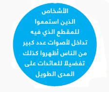 ولذلك قررنا في الدراسة التالية عدم عرض المقال، وطلبنا من المشاركين بدل ذلك الاستماع إلى مقاطع صوتية، لعدد كبير من الأشخاص يتحدثون، وأُخرى فيها امتزاج لأصوات اعتيادية، قبل الإجابة عن الأسئلة. وما حصل هو أنّ المجموعة التي استمعت للمقطع الذي فيه تداخل لأصوات عدد كبير من الناس، أظهروا كذلك تفضيلاً للعائدات على المدى الطويل.