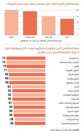 يشكو كثير من الموظفين من تغلغل البيروقراطية في شركاتهم، ما يُبطئ عملية اتخاذ القرار. لتحديد حجم هذه المشكلة، وضع باحثون "مؤشر كتلة البيروقراطية" أو BMI، وقاموا بدراسة شارك فيها أكثر من 7,000 قارئ من قراء مجلة هارفارد بزنس ريفيو، حول مدى تأثير البيروقراطية على عملهم. كان من بين نتائج هذه الدراسة، أن الشركات الكبرى كان لديها ميل أكبر إلى البيروقراطية، ويقول ثلثا الموظفين إن الأمر قد ازداد سوءاً خلال السنوات الأخيرة الماضية، وعلى الأخص في الوظائف ذات التعامل المباشر مع العملاء، مثل وظائف خدمة العملاء والمبيعات، والتي ينالها النصيب الأكبر من التأثير.