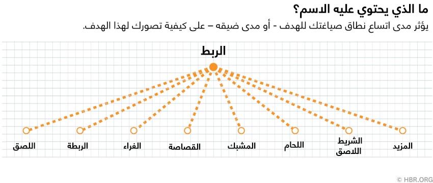 لنفترض أننا طلبنا منك التفكير في طريقة لإلصاق شيء ما بصندوق قمامة. من المحتمل أن تفكر، مثل معظم الأشخاص، في استخدام الغراء أو الشريط، وكليهما من المواد اللاصقة. ولكن ماذا لو طلبنا منك بدلاً من ذلك ربط شيء ما بالصندوق؟ من شأن مجرد تغيير فعل معين مثل "اللصق" بفعل أكثر عمومية أن يدفعك على الأرجح إلى سرد مجموعة واسعة من الاحتمالات مثل: الدبوس اللاصق ودبوس الورق والمسمار والخيط والشريط اللاصق، وهلم جرا. وهذا لأن طريقة صياغة الغرض غالباً ما تضيّق حيّز تفكير الأشخاص. ونسمي هذا الحاجز "التعلق بالهدف". ويمكن أن يساعد وضع إطار للمشكلة بعبارات أكثر عمومية في التغلب عليها.