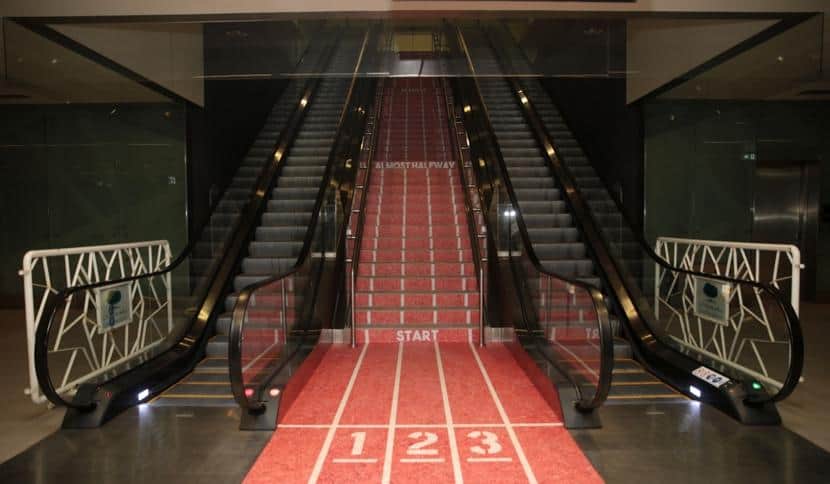 حوّلت المجموعة الثانية السلالم إلى لعبة بتصميمه ليشبه مسار الركض ووضعت علامات تحفيزية على الصفوف المؤدية إلى السلالم، وهو ما زاد من معدل استخدام السلالم العادية في الساعة بنسبة 189%.