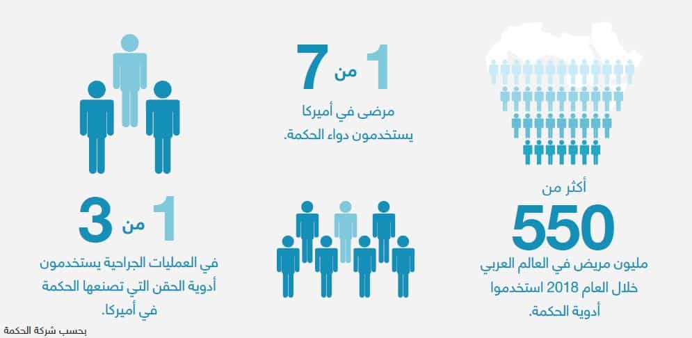 نعمل حالياً في أكثر من خمسين بلداً ولدينا 31 منشأة تصنيعية حول العالم، ويتم تداول أسهم الحكمة في بورصات لندن ودبي ناسداك، ويعمل معنا حوالي 8,400 موظف. وقد كنا على الدوام نفاضل بين الدول التي ننتشر بها أصلاً، ونفضل باستمرار على ترسيخ عملنا في الدول التي نعمل بها، ولا نتوسع إلا وفقاً لشروط يأتي على رأسها مدى ملائمة البلد الجديد لشروط الامتثال.