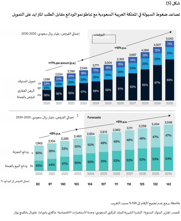 لتخفيف ضغوط السيولة والحصول على تمويل أرخص، تستطيع بنوك دول مجلس التعاون الخليجي زيادة التزاماتها وجذب ودائع العملاء الأفراد على المدى القصير إلى المتوسط. ومع ذلك، فإن الرقابة الفعالة وتخفيف المخاطر سيكونان أمرين حاسمين لضمان الإدارة الحكيمة للالتزامات والتعامل مع تدفق العملاء ذوي التاريخ الائتماني المحدود. بالإضافة إلى ذلك، من الممكن أن يؤدي إطلاق برامج التوريق المستهدفة إلى تحرير الميزانيات العمومية للبنوك، وتخفيف نسب القروض إلى الودائع، وتمكين البنوك من تخصيص رأس المال لدعم المزيد من النمو.