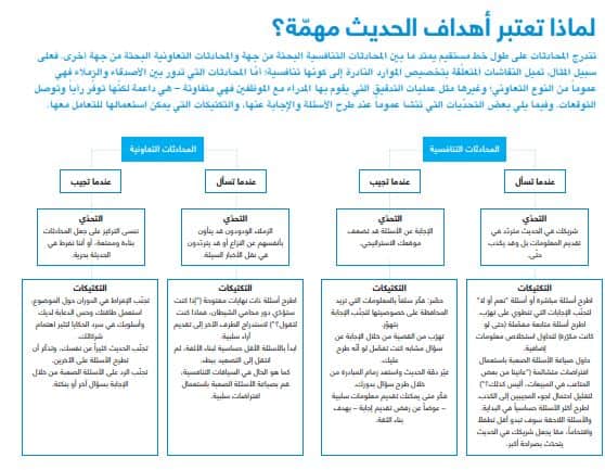 تقترح أبحاثنا عدداً من المقاربات التي يمكن أن تعزّز قوّة الأسئلة وكفاءتها. ويتوقّف اختيار المقاربة الفضلى في حالة معيّنة على أهداف الأشخاص المشاركين في الحديث – وتحديداً ما إذا كان النقاش تعاونياً (على سبيل المثال، ربما يحاول الثنائي بناء علاقة أو إنجاز مهمّة معيّنة معاً) أو تنافسياً (الطرفان يحاولان استخلاص معلومات حسّاسة من بعضهما البعض أو خدمة مصالحهما)، أو مزيجاً من الاثنين. (راجع الفقرة الجانبية التي تحمل عنوان: "لماذا تعتبر أهداف الحديث مهمّة؟"). وإليك بعض التكتيكات التي يمكنك أخذها بالاعتبار.