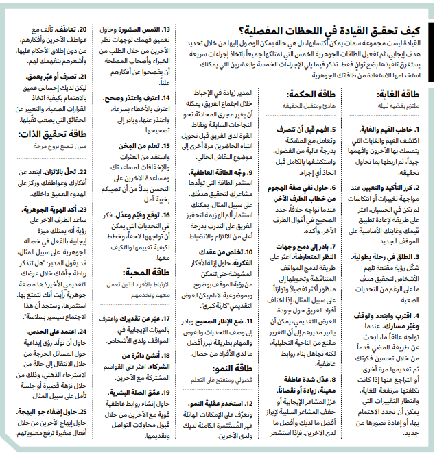 باستخدام واحد أو أكثر من 25 إجراءً بسيطاً، يمكن للقادة تصميم استجاباتهم وفقاً للمواقف المتطورة وتحقيق أعلى مستوى من الأداء الآنيّ لديهم ولدى مَن يعملون معهم.