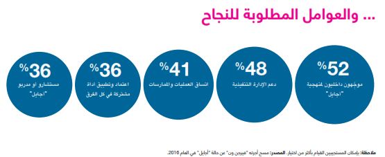 يتقدم رواد "أجايل" في عالم التكنولوجيا بسنوات عن الجميع في تبني المنهجية على نطاق واسع. من يمكن أن يكون إذن أكثر تأهيلاً منهم لإعطاء النصح والتوجيه للمدراء وقادة الموارد البشرية الذي يكابدون من أجل تطبيق ممارسات إدارة الكفاءات "أجايل" في شركاتهم؟ حدد آلاف من مطوري البرمجيات في عدة بلدان وقطاعات في مسح أجري قبل فترة قريبة العقبات الكأداء التي تقف في طريق تطبيق المنهجية على نطاق واسع والطرق التي اتبعوها لتجاوزها.