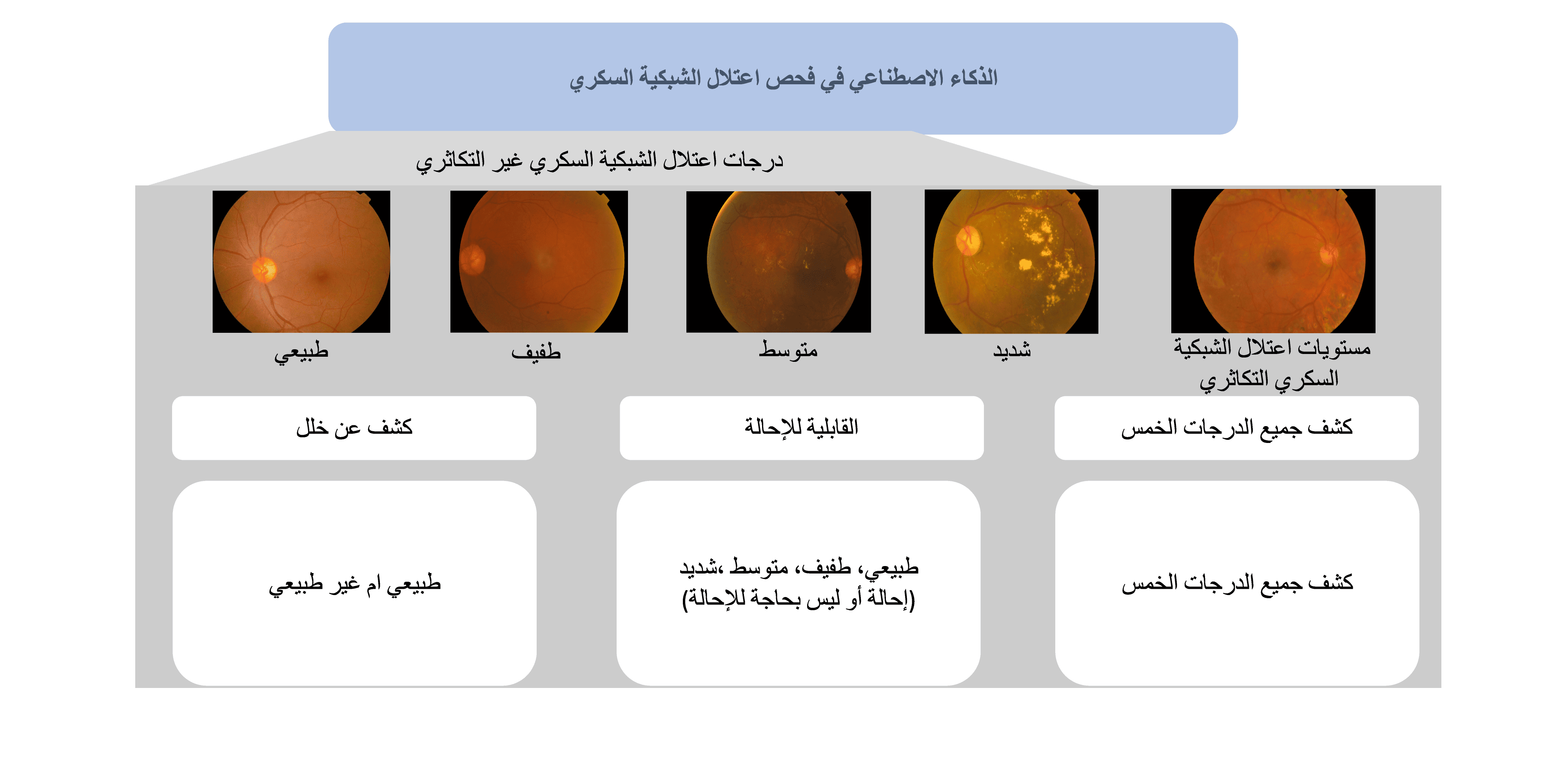 أنشئ مركز للتميز، يخص التنبؤ باعتلال الشبكية السكري، مع مستشفى الملك خالد التخصصي للعيون، يعمل على إطلاق أول تجربة سريرية لإثبات قدرة دمج خوارزميات الذكاء الاصطناعي في بيئة عمل المختصين في اعتلال الشبكية للعين السكرية من التنبؤ المبكر للمرض. إذ يقول سعادة الرئيس التنفيذي لمستشفى الملك خالد التخصصي للعيون، الدكتور عبد العزيز الراجحي، إن الخوارزمية التي تم تطويرها بالتعاون مع سدايا ستسهم في الكشف عن عدد أكبر من المرضى بوقت أقصر و مجهود أقل. ويعد النظام أول منتج سعودي بأيدي كفاءات سعودية وبيانات تحاكي سكان المملكة.