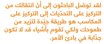 ولكن عندما نريد "فعلياً" أن نتعلّم شيئاً جديداً، فإنّنا نركّز على الجانب الإيجابي، أي أنّنا نركّز على المكاسب التي سنحصل عليها من تعلّم ذلك الشيء الجديد، ونتخيّل مستقبلاً سعيداً نحصد فيه ثمار عملية التعلّم هذه. ويدفعنا ذلك إلى اتخاذ الإجراءات المطلوبة. فقد توصّل الباحثون إلى أنّ انتقالك من التركيز على التحدّيات إلى التركيز على المكاسب هو طريقة جيّدة لتزيد طموحك ولكي تقوم بأشياء قد لا تكون جذّابة في بادئ الأمر. فعلى سبيل المثال، عندما شجّعت نيكول ديتلينغ، عالمة النفس في جامعة يوتاه، ممارسي رياضة الألعاب البهلوانية الجويّة ورياضة التزلّج على الجليد على تخيّل أنفسهم وهم يستفيدون من مهارة معيّنة، فقد كانوا أكثر حماسة بكثير لممارستها.