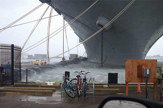 ويخفي متوسط معدل ارتفاع مستوى سطح البحر تبايناً كبيراً بين مختلف المناطق، ففي يوم احتفال البحرية بالذكرى المئوية لبناء قاعدتها الضخمة في نورفولك، سيكون منسوب مياه البحر قد ارتفع بمقدار قدم ونصف عن المستوى الذي كان عليه وقت إنشاء القاعدة إبان الحرب العالمية الأولى. ونظراً لأن الجزء الأكبر من القاعدة يرسو على ارتفاع أقل من 3 أقدام فوق مستوى سطح البحر، فسوف يزداد تعرضها للأمطار الغزيرة، وسيرتفع مستوى المد والجزر عن المعتاد، وسيغمر الماء بعض أرصفتها وتغرق الأسلاك الكهربائية وأنابيب البخار الممدودة أسفلها. وفي الوقت الحالي تغمر المياه رصيف القاعدة مرة شهرياً على الأقل، وهو ما يعوق جداول التدريب والصيانة، ويعوق بالتالي جاهزية الأسطول. ويرتفع مستوى سطح البحر عند قاعدة نورفولك بمعدل بوصة كل 6 أعوام، أي أكثر من ضعف متوسط المعدل العالمي. ومن المتوقع أن تزداد معدلات المد والجزر في نورفولك عن المعدل الحالي البالغ 9 مرات سنوياً ليصبح 280 مرة سنوياً بحلول عام 2050، وقد تتعرض المناطق المنخفضة للغمر بالمياه خلال زمن أقل يعادل 10% من الزمن الذي يُفترَض أن يتم فيه الغمر. ويتوقع مهندسو البحرية أن يرتفع مستوى سطح البحر في نورفولك من قدمين إلى أربعة أقدام على مدى الأعوام الثمانين المقبلة، وخلال هذه المدة قد يتعرض ما يصل إلى 20% من أراضي القاعدة للفيضانات اليومية ويصبح جزءاً أساسياً من منطقة المد والجزر.