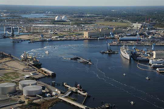 وفي ظل جهود التخطيط طويل الأجل تتخذ البحرية خطوات لتعزيز بنيتها التحتية الحالية، مثل استبدال أرصفة قاعدة نورفولك، ووضع أخرى توفر الطاقة والحرارة للسفن البحرية عندما لا تكون مغمورة بالماء بصفة دورية، بتكلفة تزيد على 100 مليون دولار لكل منها. وقد صممت الأرصفة الجديدة وفقاً للارتفاع الجديد لمستوى سطح البحر، وبتصميم مكان للمعدات الكهربائية والمائية والبخارية على طابق ثانٍ ممتد فوق الأرصفة وليس تحتها.