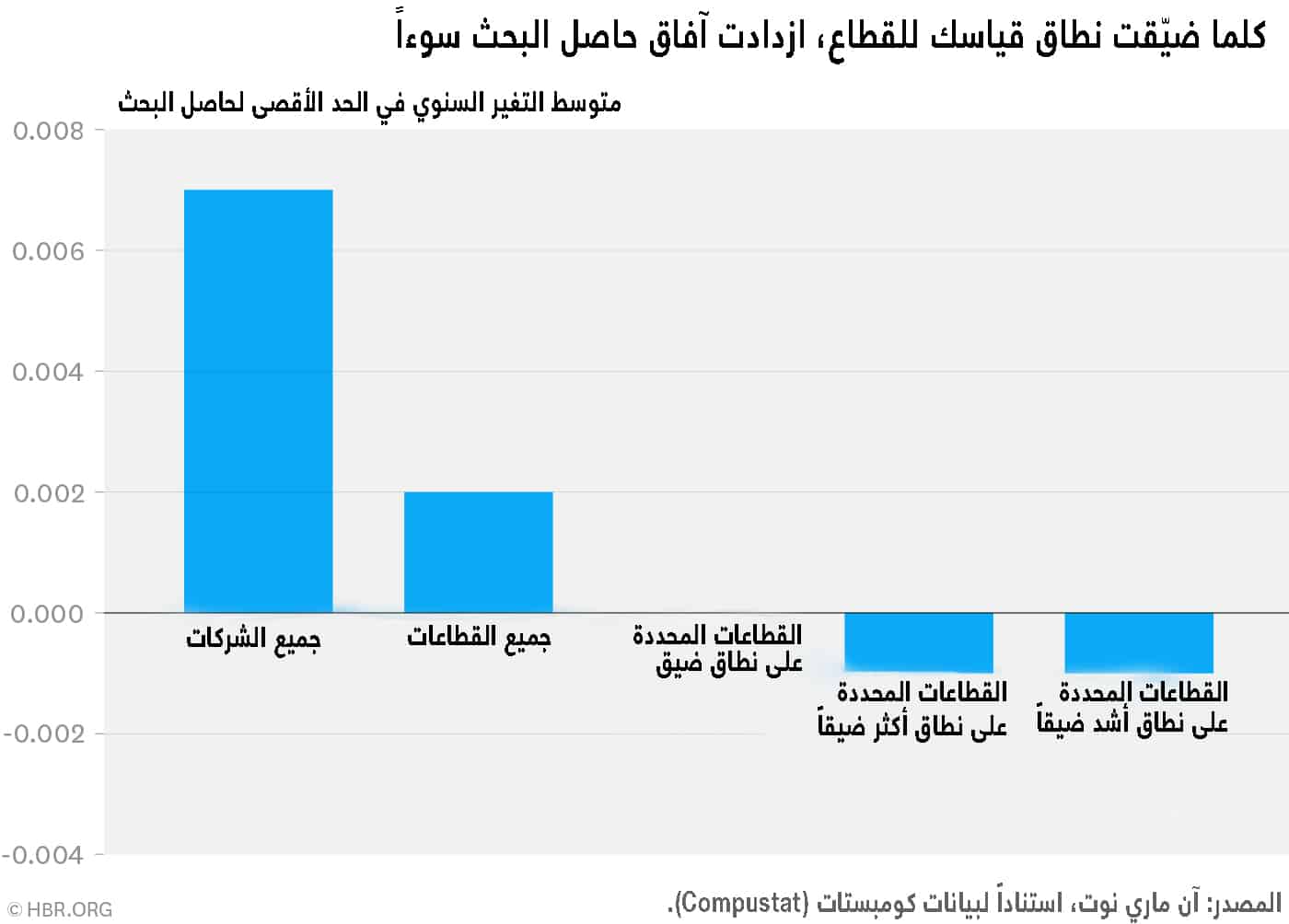 لم أتوصل إلى هذا عندما درست 40 عاماً من البيانات المالية لجميع الشركات الأميركية المطروحة للتداول العام. وتوصلت بدلاً من ذلك إلى أن الحد الأقصى لحاصل البحث كان آخذاً في التزايد بالفعل مع مرور الوقت! يبدو ذلك معقولاً عندما تفكر في جميع الشركات المذهلة التي أُنشأت باعتبارها جزءاً من اقتصاد الإنترنت، ولكن ما زال هناك ما يدعو إلى التشكيك عندما تسبح عكس التيار.