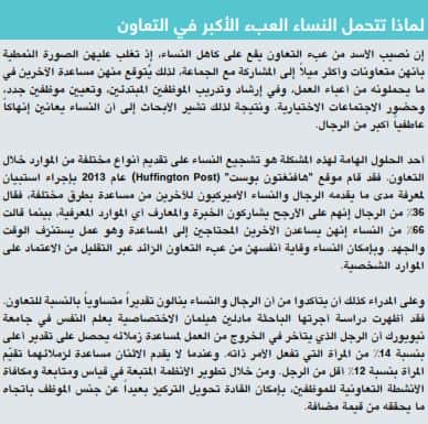 أضف إلى ذلك ما أظهرته دراستنا لما يزيد عن 300 مؤسسة، من أن توزّع العمل التعاوني غالباً ما يتصف بالكثير من عدم التوازن. ففي معظم الحالات تأتي 20 – 30% من الأنشطة التعاونية ذات القيمة المضافة من 3% إلى 5% من الموظفين. فعندما يُعرف موظف بكفاءته واستعداده للمساعدة يتم تحميله مشاريع وأدوار ذات أهمية متزايدة. فذهنية العطاء التي يتمتع بها هؤلاء الأشخاص ورغبتهم في مساعدة الآخرين تعزز بسرعة أداءهم وسمعتهم. وتشير دراسة حديثة برئاسة نينج لي في جامعة أيوا إلى أن كل واحد من أولئك الموظفين الذين يقومون بأكثر مما هو مطلوب منهم ويساهمون في كثير من الأحيان في ما يتجاوز نطاق دورهم، بإمكانه التأثير في أداء فريقه أكثر من الاعضاء الآخرين مجتمعين.