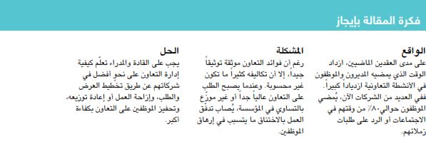 لقد اكتسحت الأنشطة التعاونية مكان العمل. فمع توسّع الأعمال التجارية واكتسابها صبغة عالمية وعابرة للتخصصات، بدأت الأسوار بين الوظائف المختلفة في كل شركة تسقط وازداد التواصل بين الأفراد حتى صار العمل الجماعي يُعد السمة الأساسية لنجاح المؤسسات. وبحسب البيانات التي جمعناها على مدى عقدين من الزمن، فإن الوقت الذي يمضيه المدراء والموظفون في أنشطة تعاونية قد تضخم بمعدل 50% أو أكثر.