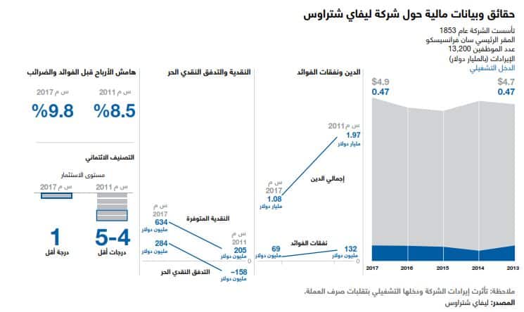 تحرز شركتنا اليوم قدراً كبيراً من التقدم، فلقد حققنا نمواً مضطرداً على الخط الأعلى والخط الأدنى على مدار السنوات الخمس الماضية تقريباً، وزدنا قيمة شركتنا لأكثر من الضعف. كما عززنا ميزانيتنا إلى حد كبير وسددنا حوالي مليار دولار من ديوننا. وقد باتت حصيلة ميزانيتنا اليوم أصولاً (وليست خصوماً)، مع تحقيق سيولة تبلغ 1.2 مليار دولار. كما عززنا إنفاقنا على الإعلانات بزيادة هائلة، وهو ما يؤتي ثماره بشكل جيد. لقد كانت السنة المالية 2017 أقوى سنة للشركة خلال أكثر من عقد من الزمن، حيث حققت الشركة نمواً في الإيرادات بلغت نسبته 8%، في حين بلغت نسبة نمو علامة ليفايس التجارية 9%. وعلى الرغم من أننا حققنا نمواً في الإيرادات والأرباح، إلا أنه لا يزال هنالك مجال كبير للمزيد من النمو فحصتنا العامة في سوق الألبسة النسائية لا تتعدى رقمًا أحادياً مرتفعاً. وحتى عندما تحافظ الألبسة الرياضية الترفيهية على قوتها في السوق، وتبقى سوق ألبسة الدنيم القطنية النسائية كما هي، فإن بإمكاننا تحقيق النمو من خلال القضم من حصص منافسينا. لقد نمت أعمالنا في مجال الألبسة العلوية بنسبة 35% لكن حصتنا السوقية من تلك الألبسة لا تزال أقل من 1%. إنني أرى التحسن أينما وجهت ناظري، فمثلاً لقد بات لدينا 3,000 متجر، وبخلاف الكثير من تجار التجزئة الآخرين نستمر في افتتاح متاجر جديدة.