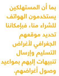 كانت الهواتف في تلك المرحلة تحوي برمجيات للخرائط، وبدأت تقدم خصائص متعلقة بتحديد الموقع الجغرافي. وبما أن المستهلكين يستخدمون الهواتف للشراء منا، فبإمكاننا تحديد موقعهم الجغرافي لأغراض التسليم وإرسال تنبيهات إليهم بمواعيد وصول أغراضهم لضمان وجودهم للاستلام والسداد.
