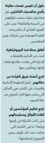 ويجب أن تكون الشركة مستعدّة لإجراء تقليص كبيرفي حجمها إذا كان ذلك هو المطلوب لاستجماع قواها، وإعادة الانتشار، والبدء مجدداً في عملية النمو المُربح. ولنأخذ على سبيل المثال حالة شركة بيربيتشوال (Perpetual)، وهي أقدم صندوق اتئماني في أستراليا، تمكّن من التعافي من الجمود من خلال التقليل من تكاليفه التشغيلية بنسبة 25%، والتخلّص من بعض الأعمال غير الأساسية، وإعادة إحياء الرؤية الأساسية لمؤسس الشركة.