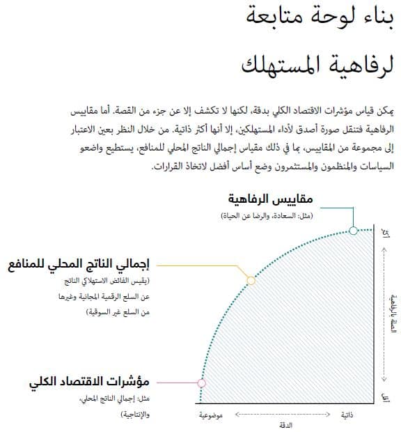 على نطاق يتراوح بين مؤشرات الاقتصاد الكلي التقليدية مثل إجمالي الناتج المحلي والإنتاجية، التي تعتبر في غاية الدقة، وبين مؤشرات الرفاهية مثل السعادة، التي غالباً ما تكون تقريبية، يقع مقياس إجمالي الناتج المحلي للمنافع في مكان وسط بينهما. يتمتع إجمالي الناتج المحلي بتعريف محدد وقيمة محددة، لكنه لا يقيس الفائض الاستهلاكي الناتج عن الاقتصاد الرقمي. أما تقييمات السعادة فتواجه مشكلة معاكسة. يحقق مقياس إجمالي الناتج المحلي للمنافع توازناً بين طرفي النقيض هذين. وبذلك يمثل هذا المقياس تطوراً مفيداً لواضعي السياسات والمنظمين الذين يحتاجون فهماً كاملاً لكيفية تأثير التكنولوجيا على الاقتصاد كي يستطيعوا اتخاذ قرارات سليمة.
