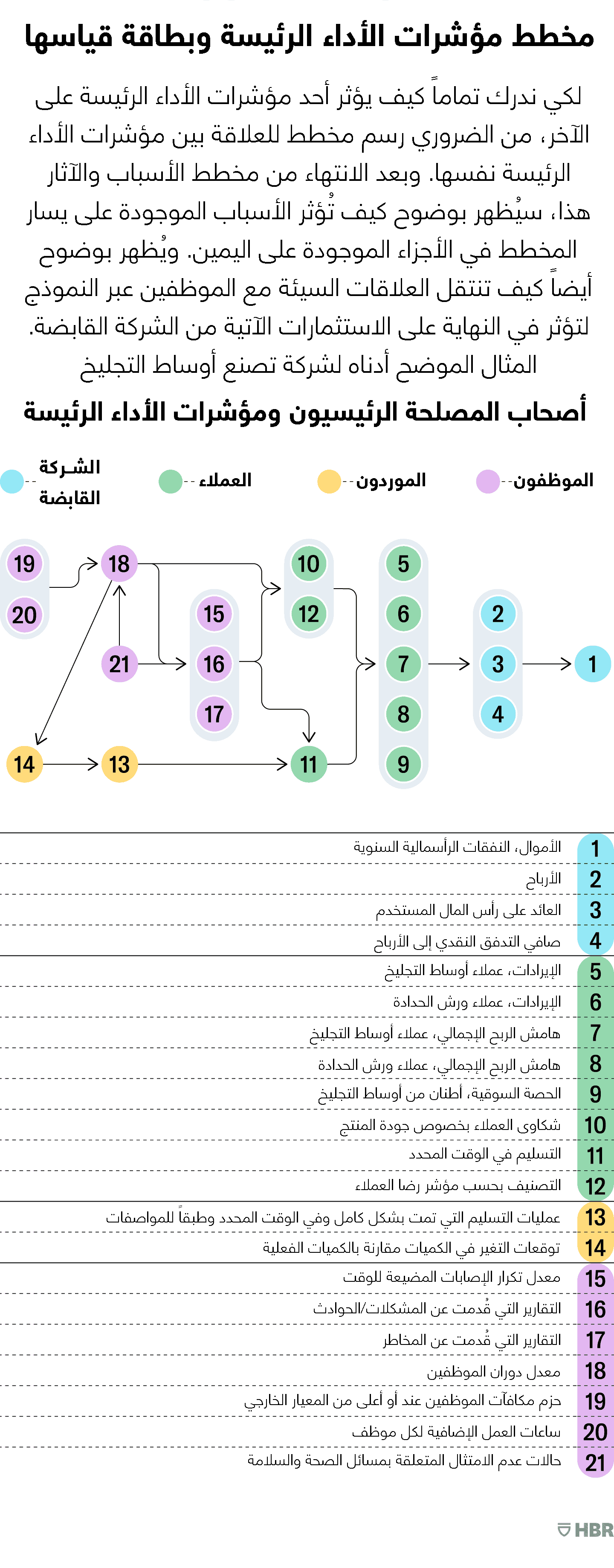 لكي ندرك تماماً كيف يؤثر أحد مؤشرات الأداء الرئيسة على الآخر، من الضروري رسم مخطط للعلاقة بين مؤشرات الأداء الرئيسة نفسها.