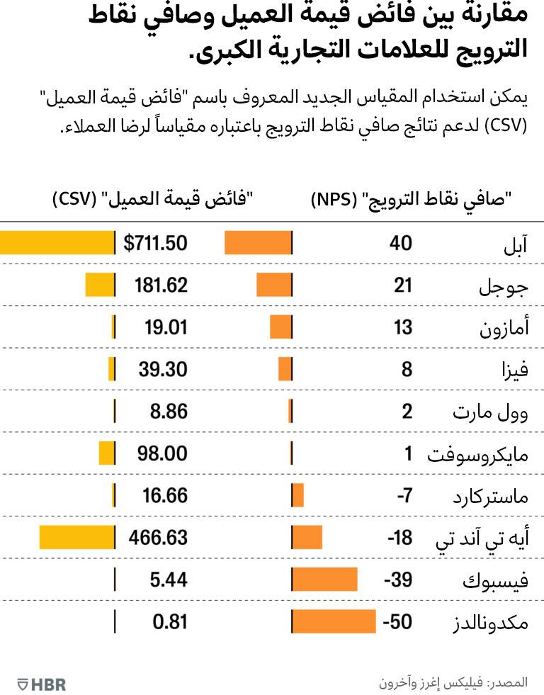 يقيس صافي نقاط الترويج رضا العملاء، لكنه لا يقيس بالضرورة مدى سهولة انتقالهم إلى منتجات أو خدمات بديلة. ثمة مقياس آخر فعّال، وهو "فائض قيمة العميل" (Customer Surplus Value - CSV) الذي يكمِّل مقياس صافي نقاط الترويج من خلال التركيز على مفهوم أساسي بعلم الاقتصاد الجزئي، وهو "الفائض الاستهلاكي" (Consumer Surplus). يشير هذا المفهوم إلى الفرق بين المبلغ الذي يُبدي المستهلك استعداده لدفعه مقابل الحصول على مُنتَج أو خدمة معينة وسعرها الحالي. فإذا كنت على استعداد لدفع ما يصل إلى 5 دولارات حداً أقصى مقابل فنجان قهوة، لكنك تشتري واحداً مقابل 3 دولارات فقط، فالفائض الاستهلاكي يساوي دولارين في هذه الحالة. وعلى المدراء اعتباره "الرقم الآخر الذي يجب تنميته".
