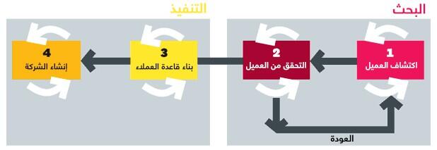 تبحث الشركات الناشئة أثناء عملية تنمية العملاء عن نموذج عمل ينجح معها، وإذا كشفت تعليقات العملاء عن أن فرضياتها المتعلقة بالعمل خاطئة، فإنها إما تراجعها أو "تعود" لوضع فرضيات جديدة. وبمجرد أن يثبت النموذج جدواه، تبدأ الشركة الناشئة في التنفيذ وإعداد تنظيم رسمي. تتصف كل مرحلة من مراحل عملية تنمية العملاء بأنها تكرارية، حيث إنه من المحتمل أن تفشل الشركة الناشئة عدة مرات قبل إيجاد النهج الصحيح.