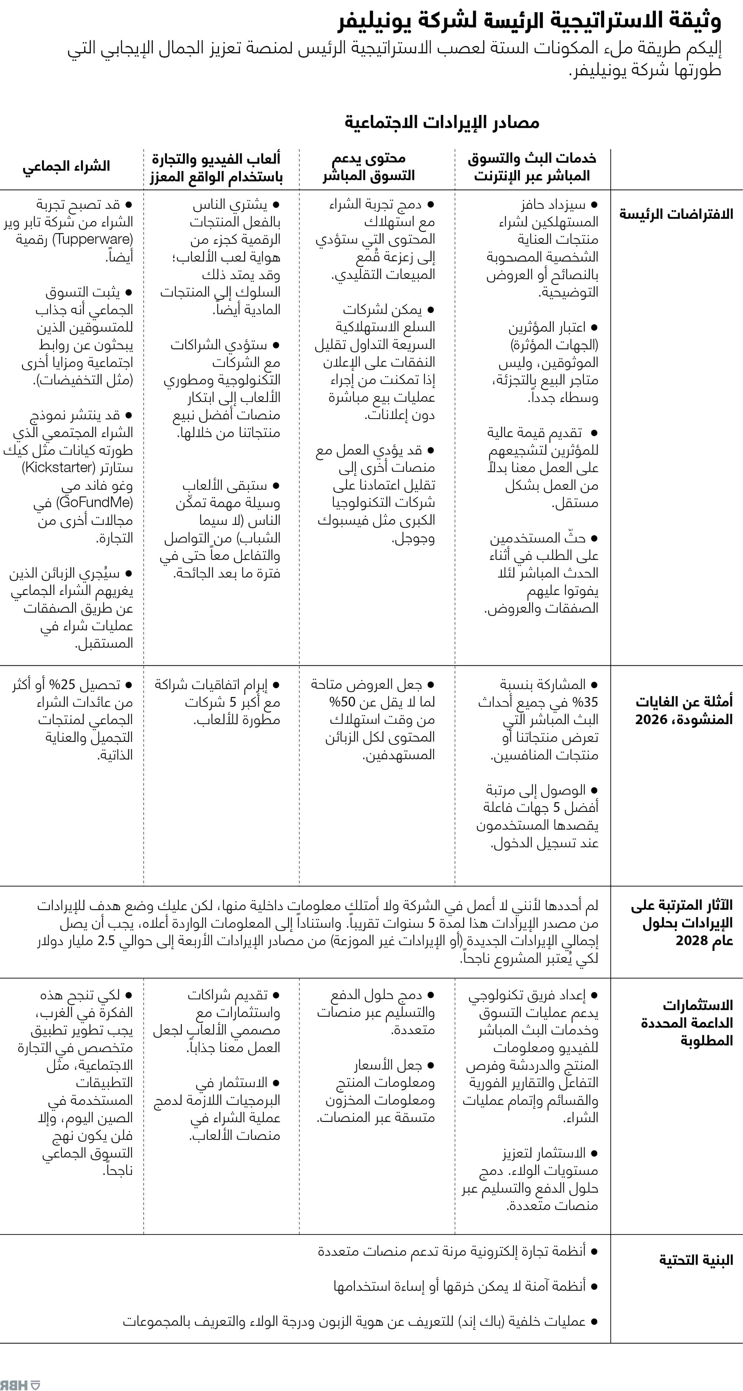 يُظهر الشكل التوضيحي وثيقة الاستراتيجية الرئيسية وعناصرها كاملة. قد يكون من الصعب ملء الوثيقة بالأرقام والغايات المحددة دون امتلاك معلومات داخلية، لكنني سأقدم بعض الأمثلة التوضيحية.