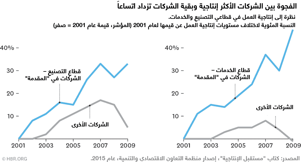 أو ربما تكون الشركات الناجحة في استخدام تقنية المعلومات تعلم بعض الأمور التي لا يدركها منافسوها بشكل جيد. فكما ذكرت كيارا كريسكيولو، الباحثة الاقتصادية في "منظمة التعاون الاقتصادي والتنمية" (OECD)، عام 2015: "بعض الشركات أدركت المسألة بوضوح، وبعضها لم يفعل".