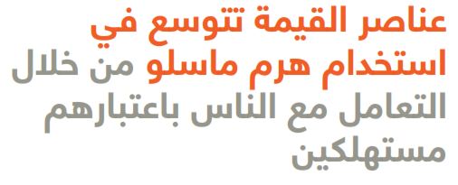 للنموذج الذي نتبعه جذور فكرية تعود إلى "هرم ماسلو للاحتياجات الإنسانية" والذي وضعه عالم النفس أبراهام ماسلو، والذي نشر أول مرة عام 1943. كان طرح ماسلو حين كان عضو هيئة تدريس في جامعة بروكلين، هو أن أفعال الإنسان تنبع من نزعة فطرية لتحقيق احتياجات تتراوح بين الأساسي (الأمن، المأوى، الطعام، الراحة) والمعقد (تقدير الذات، الثقة). ومعظم خبراء التسويق اليوم لديهم معرفة بهرم ماسلو. ولكن عناصر القيمة تتوسع في استخدام أفكار ماسلو من خلال التعامل مع الناس باعتبارهم مستهلكين، حيث يتم وصف سلوكهم تجاه المنتجات والخدمات.
