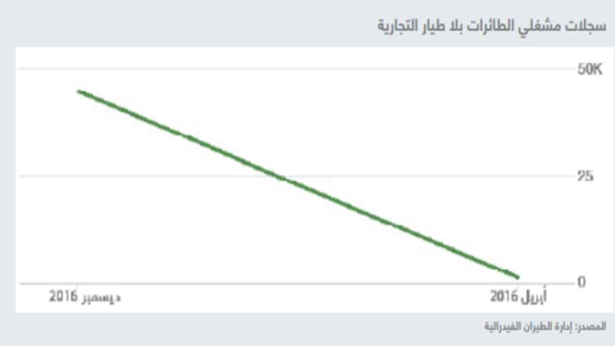 منذ أن بدأ التسجيل على شبكة الإنترنت لمشغلي الطائرات التجارية بلا طيار، تصاعد عدد طلبات التسجيل، حيث بلغ في المتوسط 180 طلباً يومياً، وكاد أن يبلغ إجمالاً الآن 50 ألف طلب.