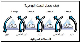 قد لا يكون شرح الأمور سهلاً أحياناً، لذلك قد يلجأ الاستشاريون إلى استعمال الأشكال الإيضاحية البصرية لتساعدهم في الشرح والتفسير. فما هي الآلية التي تسير وفقها عملية البحث الهرمي؟ إليكم فيما يلي شكلاً يوضح معنى البحث الهرمي: