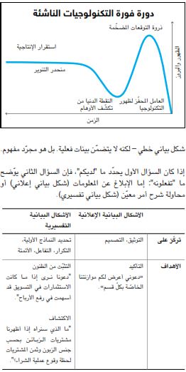 هذا لا يعني بأن الأشكال البيانية الإعلانية لا يجب أن تقود إلى خوض النقاشات. وإنما يجب أن يدور النقاش حول الفكرة من الشكل البياني وليس حول الشكل البياني ذاته.