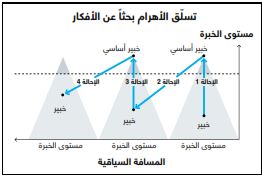 يوجد في الشكل الإيضاحي محوران، وهما يستعملان معايير يمكننا استيعابها فوراً: فالمجالات المستهدفة موضوعة على المحور الأفقي من القريب إلى البعيد، في حين أن الخبرة موضوعة على المحور العمودي، وهي موضّحة من الخبرة المنخفضة إلى الخبرة العالية. ويظهر شكل الهرم بحدّ ذاته الندرة النسبية للخبراء الأساسيين الكبار مقارنة مع الخبراء الأقل خبرة. وتساعدنا الكلمتان المستعملتان في العنوان – "تسلّق" و"الأهرام" – في فهم الفكرة بسرعة.