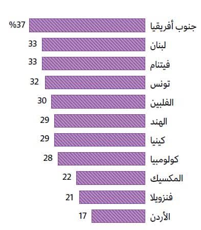 ملاحظة: الدول المختارة تمثل عينة من مختلف المناطق الجغرافية ووفقاً لمجموعة من ظروف السوق.