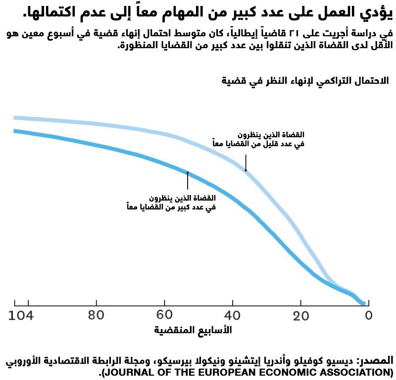 بعد أن نشر كوفيلو وإيتشينو وبيرسيكو بحثاً نظرياً حول هذه الفكرة، عملوا على دراسة مثال مُقنِع من الواقع: القضاة الإيطاليون الذين ينظرون عادة في قضايا أكثر مما يمكنهم التعامل معه بسهولة. بعضهم يعمل على عدد كبير من القضايا معاً وبعضهم لا يفعل ذلك. يشير تحليل عدد القضايا في هذه العيّنة الصغيرة إلى أن هناك بالفعل ميزة لإنجاز المهام بالتسلسل، إذ استغرق القضاة الذين يعملون على عدد كبير من المهام معاً وقتاً أطول لإنهاء الأضابير وكان من غير المرجح أن ينهوا قضاياهم في فترة زمنية محددة.