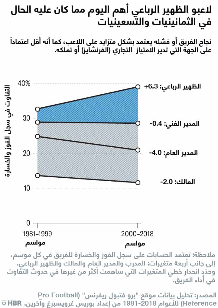 ولا شك أنّ هذه الأدوار الأربعة بالغة الأهمية للنجاح: الظهير الرباعي هو اللاعب الأهم، ويقوم المدرب بقيادة الفريق وتحديد نمط لعبه، أما المدير العام فيقوم بجمع المواهب، ويحدد المالك التوجه العام والتعيينات ويتولى تمكين القادة الآخرين. ولكن يبقى السؤال: من هو الأهم؟ قررنا تحليل الأرقام للعثور على الإجابة.