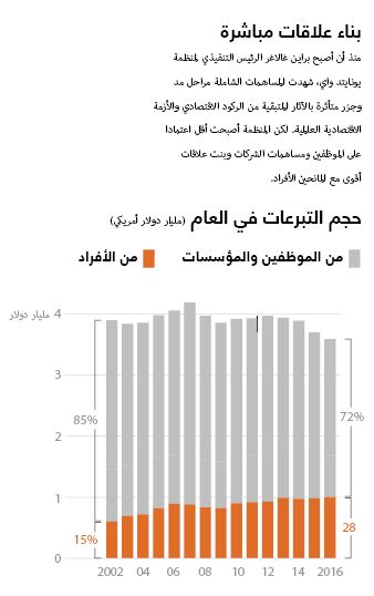 ومنذ ذلك الحين أصبح المانحون الأفراد يشكلون جزءاً أكبر من مجمل المانحين. واليوم تبرع كل واحد من أكثر من 25,000 شخص بما يزيد عن 10,000 دولار إلى منظمة يونايتد واي الخيرية بالفعل، ومنح أكثر من 600 منهم مليون دولار و35 منهم 10 ملايين دولار أو أكثر.