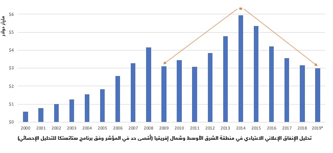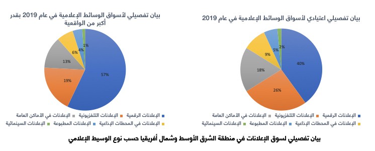 ويتفق معظم المحللين على أن الإعلانات الرقمية كانت هي الرابح الوحيد على مدار الأعوام الماضية، ويقدّرون أنها ستشكل حوالي 40% من الإنفاق الإعلاني (أي 1.3 مليار دولار) في عام 2019. وهذا يعني أن منطقة الشرق الأوسط وشمال أفريقيا ما تزال متخلفة عن ركب الاقتصادات المتقدمة مثل الولايات المتحدة، التي من المتوقع أن تمثل الإعلانات الرقمية فيها نسبة 54% من إجمالي الإنفاق الإعلاني.