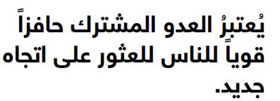 بوسعكم المحافظة على إيجابية العملية وعلى طابعها الإبداعي من خلال جعل الحلقة الراديكالية تركّز في بادئ الأمر على الاتجاه الذي يعتقد الجميع بأنّ الشركة "لا" يجب أن تذهب فيه، وعلى تحديد من هم أعداؤها. ففي غالب الأحيان يمكن لأعضاء هذه المجموعة أن يتّفقوا بسهولة أكبر على الأشياء التي لا يحبّونها، أكثر من اتفاقهم على الأشياء التي يحبّونها، في حين أنّ العدو المشترك يشكّلُ حافزاً قويّاً للتجمّع والتعبير عن اتجاه جديد. ورغم أنّ أعضاء الحلقة الراديكالية في مايكروسوفت كان لديهم رؤى مختلفة، إلا أنّهم اتفقوا في الرأي على وجود عدوّين، هما شركة سوني وجهاز الألعاب الذي صنعته "بلاي ستيشن 2"، إضافة إلى استراتيجية مايكروسوفت ذاتها بانتهاج مقاربة عامّة في الألعاب تعتمد على الحاسب الشخصي، وليس على جهاز مستقل للألعاب. (وقد أطلق الفريق على مشروع إكسبوكس اسم مشروع منتصف الطريق (Project Midway) تيمّناً بالمعركة البحرية التي دارت رحاها بين البحريتين الأمريكية واليابانية وشكّلت نقطة تحوّل في الحرب العالمية الثانية).