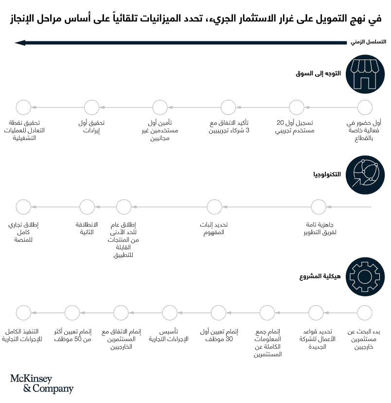 - تمويل متوفر وحوكمة واضحة تكفل المساءلة لكل مشروع يمثله المصنع ووحدة أعمال، ووضوح خطوات الموافقات والتمويل (مثل التوقيعات المشتركة بين المصنع والإدارة المعنية في الشركة الأم)، والتنسيق المسبق بشأن المراحل الرئيسية لتقديم المزيد من التمويل