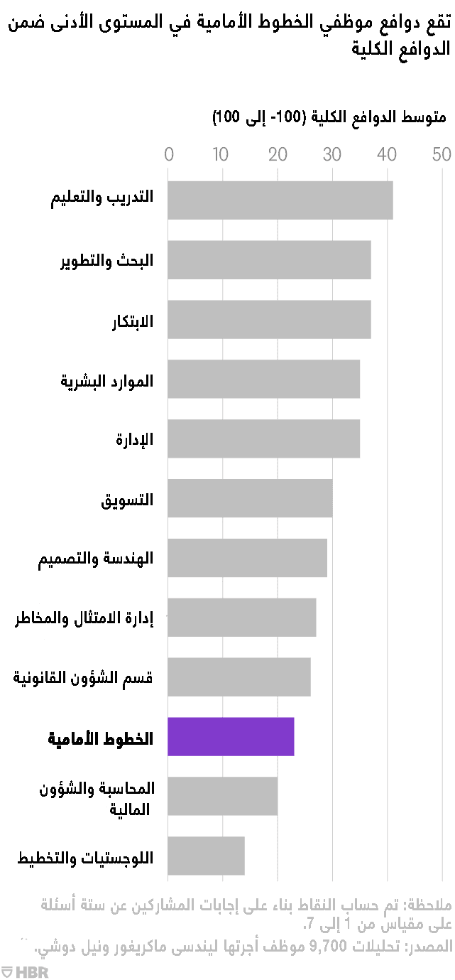 الدليل الإرشادي التالي هو المعمول به في معظم المؤسسات. وبناء على ما رأينا، يقع الدافع الكلي لدى موظفي الخطوط الأمامية ضمن أدنى المستويات.