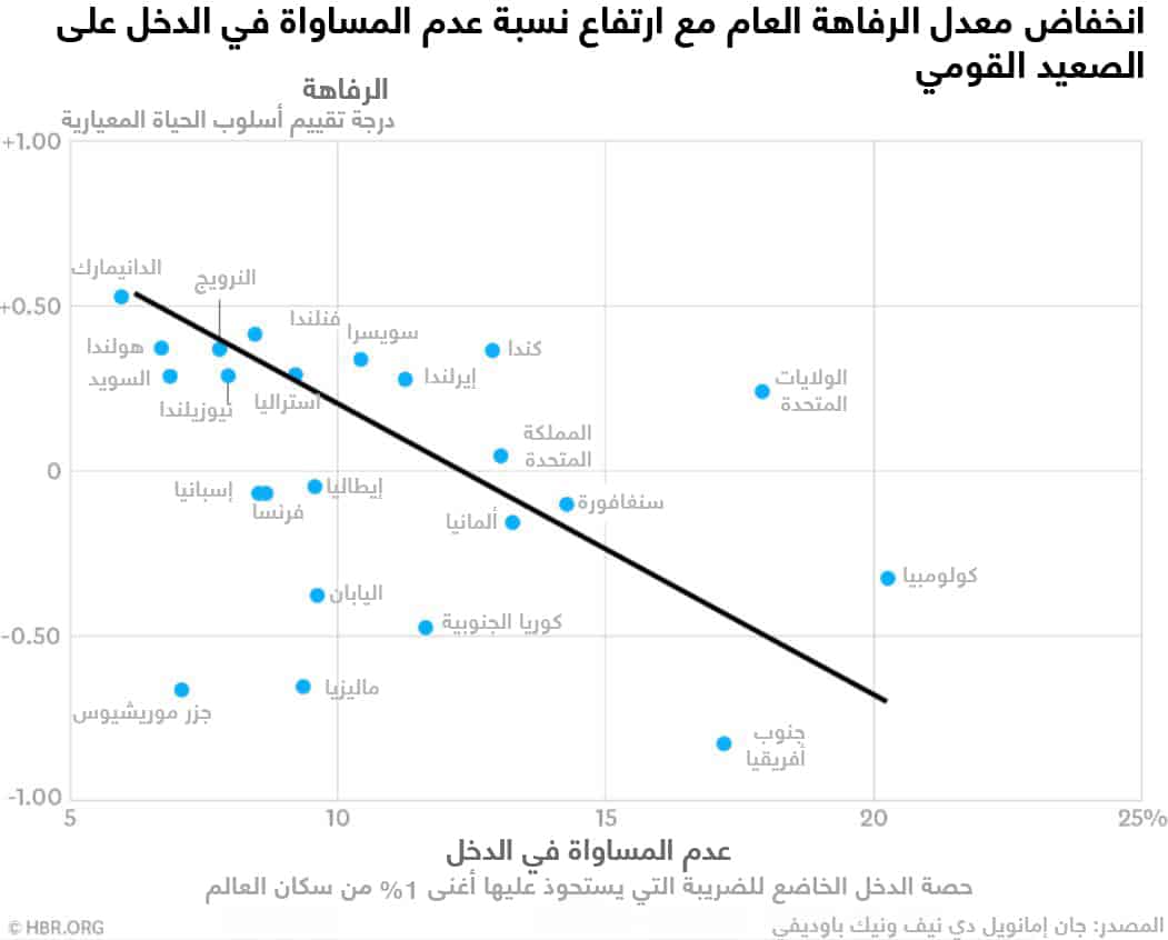 يركز معظم الحديث عن عدم المساواة في الدخل على مشاكل الفئة الأفقر، أو الآثار الاجتماعية والاقتصادية الأوسع نطاقاً لتزايد عدم المساواة، أما الأمر الذي لا ينال نصيبه من الاهتمام هو أن عدم المساواة في الدخل يجعلنا جميعاً أقل سعادة في حياتنا، حتى لو كنا في وضع مادي جيد نسبياً.