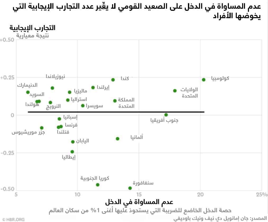 وتتبعنا الفروق نفسها في دراستنا لعدم المساواة في الدخل ووجدنا أمراً مثيراً للاهتمام، فبينما كان الرضا عن الحياة يتناسب عكساً مع عدم المساواة في الدخل، لم نجد علاقة بين الرفاه العاطفي الإيجابي وعدم المساواة في الفئة الأعلى دخلاً. ربما يرجع السبب في ذلك إلى أن الأشياء التي تُشكل تجارب عاطفية إيجابية ليس لها علاقة بالدخل والمكانة الاجتماعية.