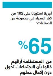 السبب هو أنّ المدراء التنفيذيين يودون أن يكونوا جنوداً مثاليين. ذلك أنهم عندما يضحُّون بوقتهم ورفاههم من أجل الاجتماعات، يفترضون أنهم بذلك يفعلون ما هو أفضل للشركة، ولا يدركون تكاليف ذلك بالنسبة للمؤسسة. فهم يتغاضون عن الخسائر الجماعية في الإنتاجية وفي التركيز والمشاركة.